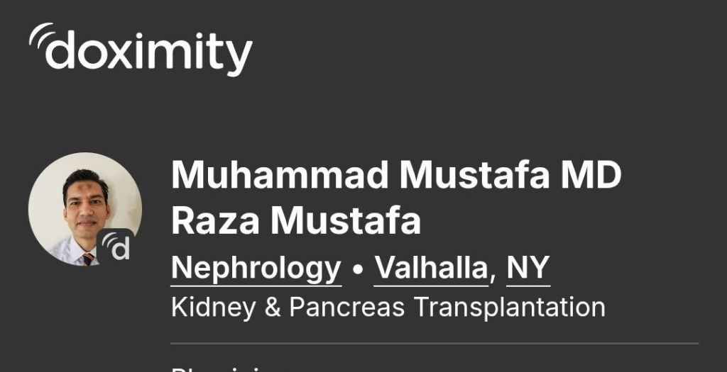 We visited Westchester Medical Center Transplantation Department once again on October 6. We met with the liver transplant surgeon, Dr. Partiula. (his photo on bottom) He explained that after examining Karen’s labs and MRI, that a number called a MELD score was calculated. This score is only for people who have Cirrhosis. The range for this score goes from 5-40, with 40 being the worst. When a patient hits 25, it’s time to begin to attempt to get on the list. Karen is exactly at 25. His reasoning now is that he believes Karen should have a dual transplant, in the same hospital stay but not at the exact moment. He believes her kidney is the priority, but he doesn’t think a new kidney paired with her current liver would be viable. However, he wants us to have Karen’s pulmonary diagnosis, Interstitial lung disease,to be further investigated before she’s clear to go on any list. He also has to confer with Dr. Mustaffa, (also pictured below) to discuss his beliefs that I stated above,and depending on what Karen’s lung issues state,they will confer and go from there. Nothing is guaranteed yet,nor will it be. However,we didn’t leave there with an absolute no or yes. There are no absolutes in a complicated case like Karen’s. That is something I’ve had to make peace with,that’s something we both have to make peace with. I took time to write because I needed to try and navigate and reconcile these issues without dumping the desperation of my sometimes intense emotions on our OPL Family. I didn’t want to write anything from a place of weakness. I’m not going to lie, it’s not easy to just not jump on here and type out when I feel distraught,worried, overwhelmed,etc…However,I’m trying to solve our problems without infringing on anyone else’s life. I believe I’m off to a good start. As long as there is hope, I will never, ever give up.